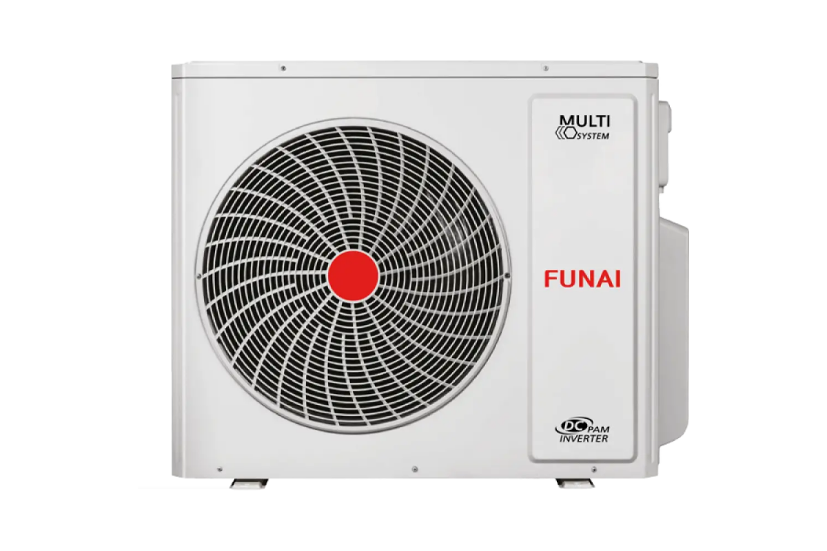 Наружный блок FUNAI KIRIGAMI Inverter RAM-I-4KG80HP.01/U предназначен для подключения до 4 внутренних блоков, обеспечивая эффективное охлаждение и обогрев помещений общей площадью до 80 м².​
