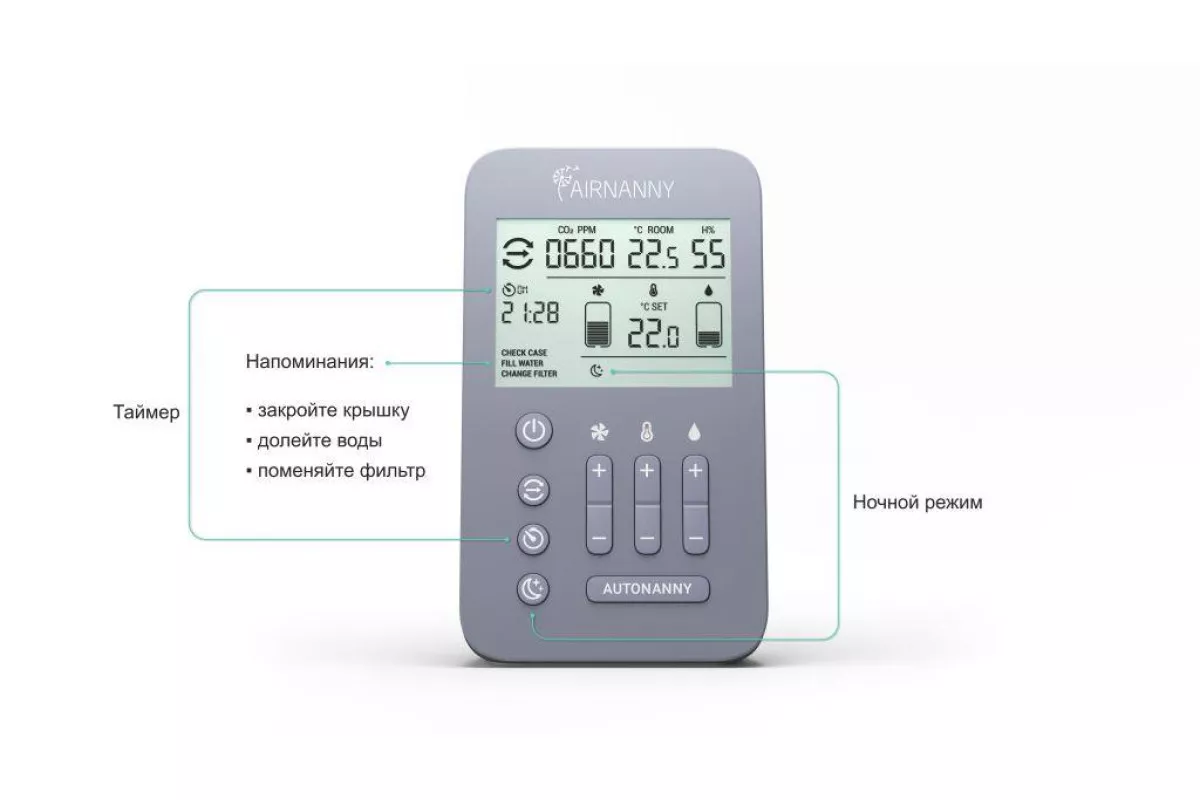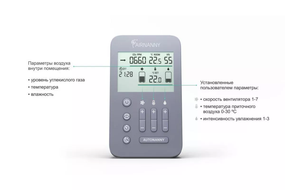 🧠 Интеллектуальное управление AutoNanny — система самостоятельно следит за уровнем СО₂, температурой и влажностью, адаптируя режимы работы для максимального комфорта и здоровья.