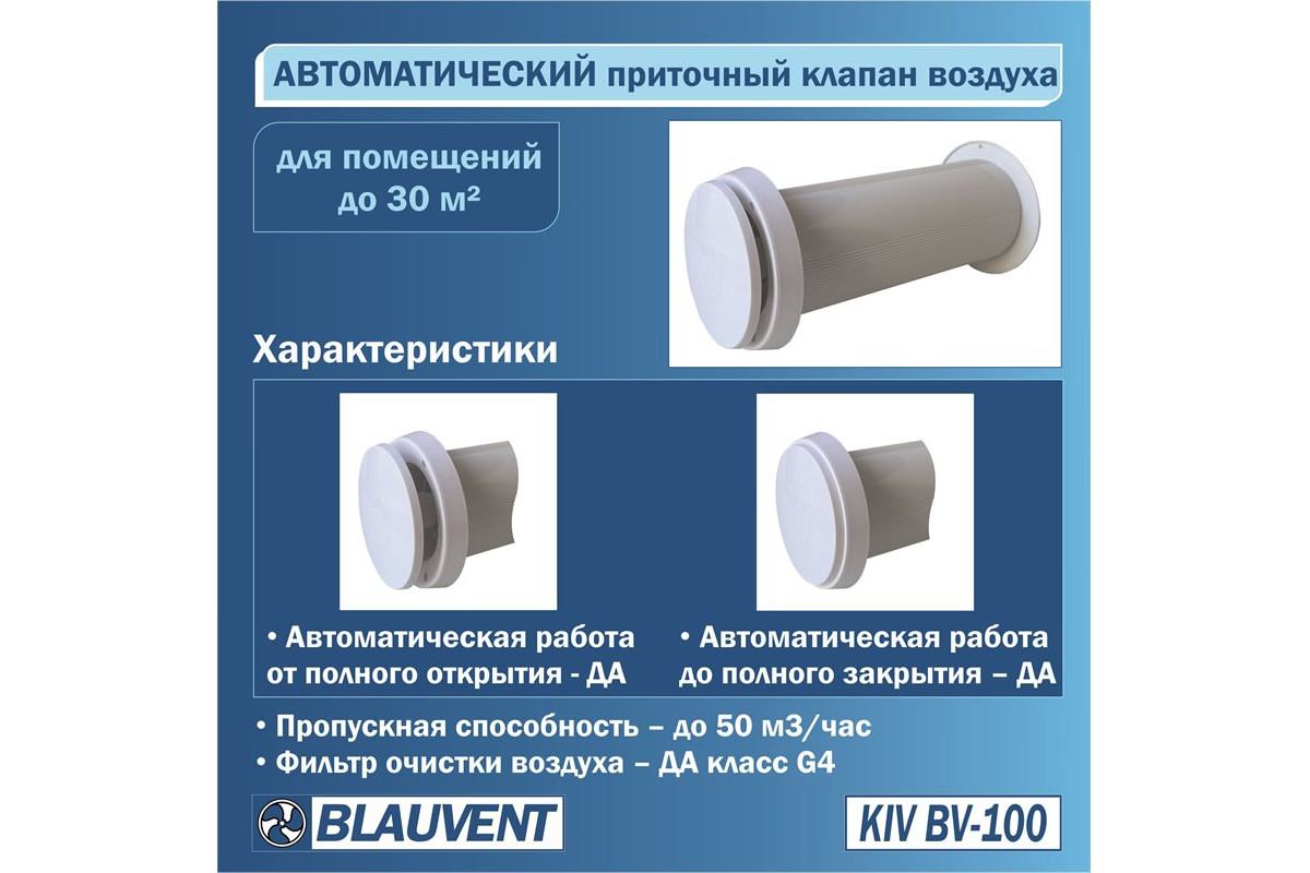 Автоматический приточный клапан BLAUVENT KIV BV‑100