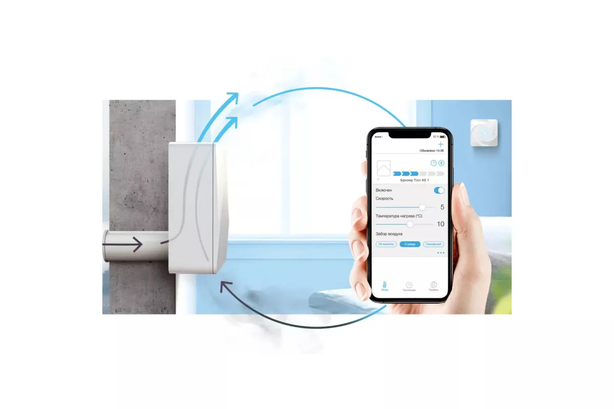 - Управляет устройствами: TION Бризер 4S, TION Бризер O2, очистители-обеззораживатели воздуха IQ200/400, очиститель-обеззараживатель TION Clever, ИК-модуль, терморегулятор Danfoss Eco