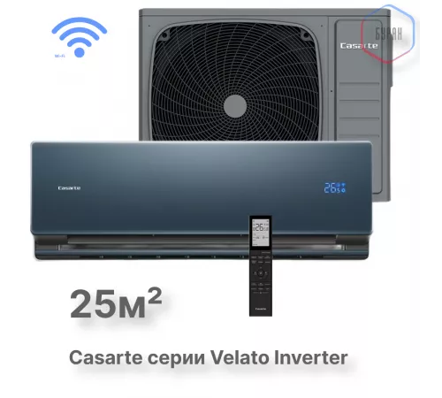 Casarte Velato Blue Inverter CAS25CC1/R3-C / 1U25CC1/R3 — идеальный выбор для тех, кто ценит комфорт, стиль и передовые технологии. Создайте идеальный микроклимат в своем доме с этим премиальным кондиционером.