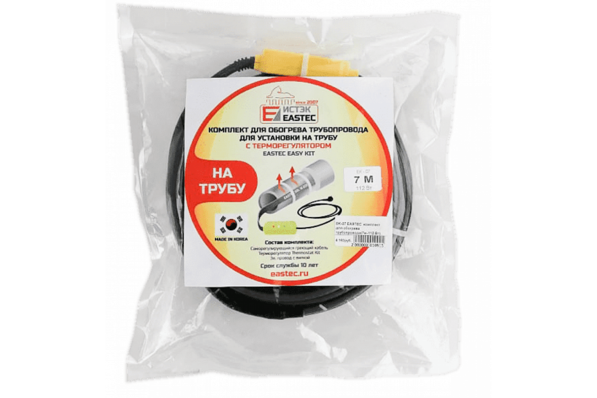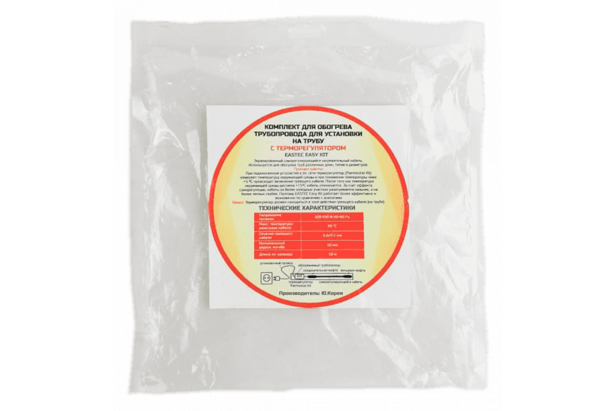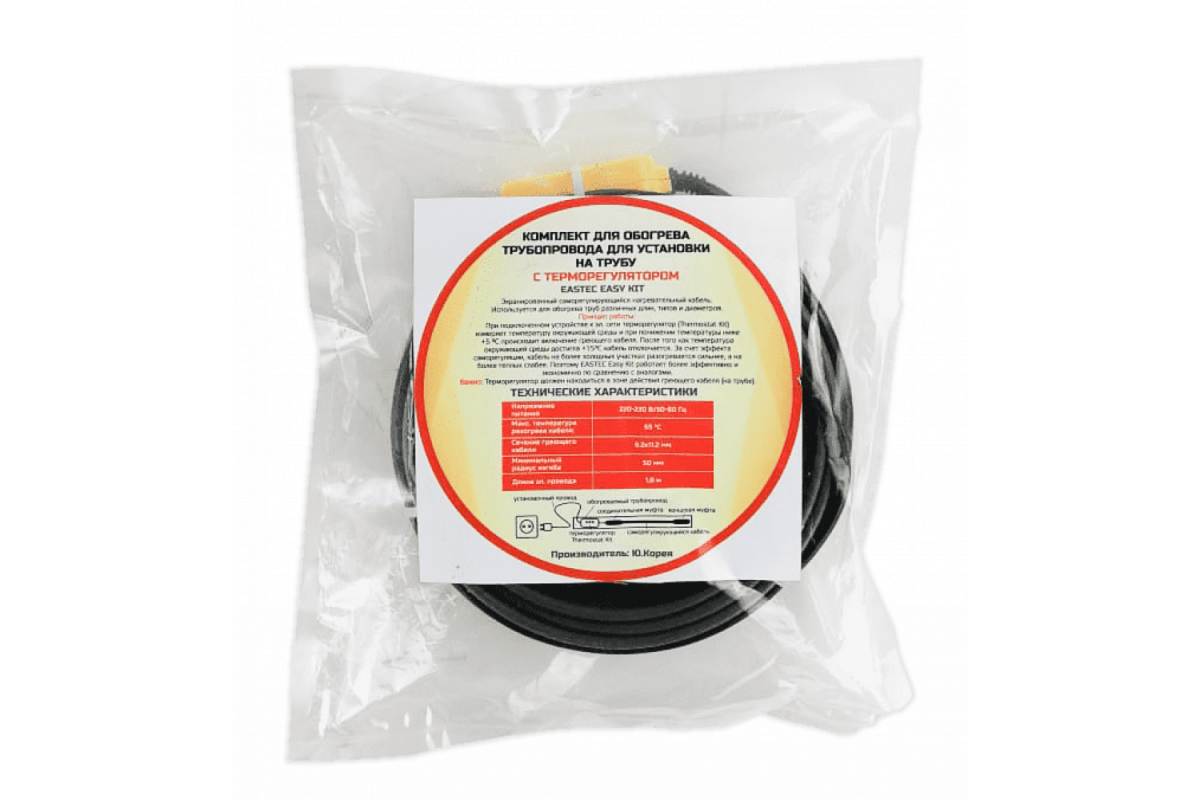 EK-06 EASTEC комплект для обогрева трубопровода(6м-96 Вт) идеально подходит для обогрева водопроводных и канализационных труб, а также систем водоснабжения на открытом воздухе, в неотапливаемых помещениях, на дачах и в загородных домах.
