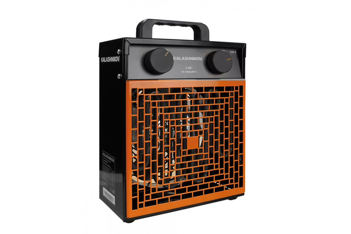 Тепловая пушка KALASHNIKOV KVF-E3-12 обладает мощностью 3 кВт, что делает её идеальным решением для эффективного обогрева различных помещений.