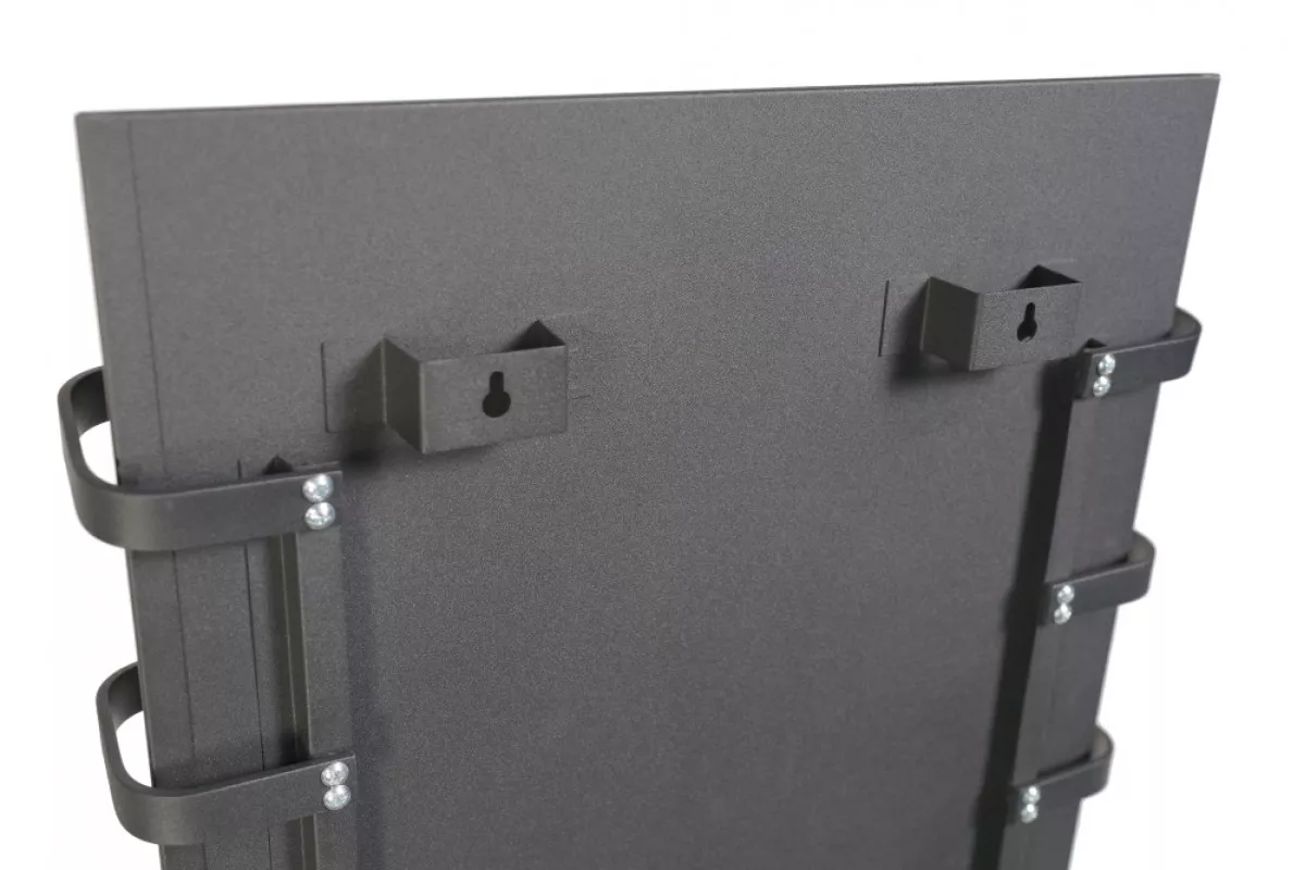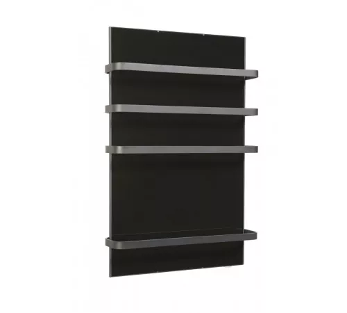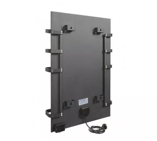 Корпус сушителя выполнен из нержавеющей стали, а греющая панель защищена противоударным закаленным стеклом толщиной 4 мм. Это гарантирует долговечность и безопасность прибора. На лицевой части расположены четыре окрашенных полотенцедержателя из алюминиевой полосы, позволяя разместить несколько вещей одновременно.
