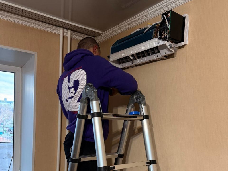 С учётом планировки и особенностей комнаты, специалист определил оптимальное место для установки внутреннего и наружного блоков, обеспечив идеальную циркуляцию воздуха.
