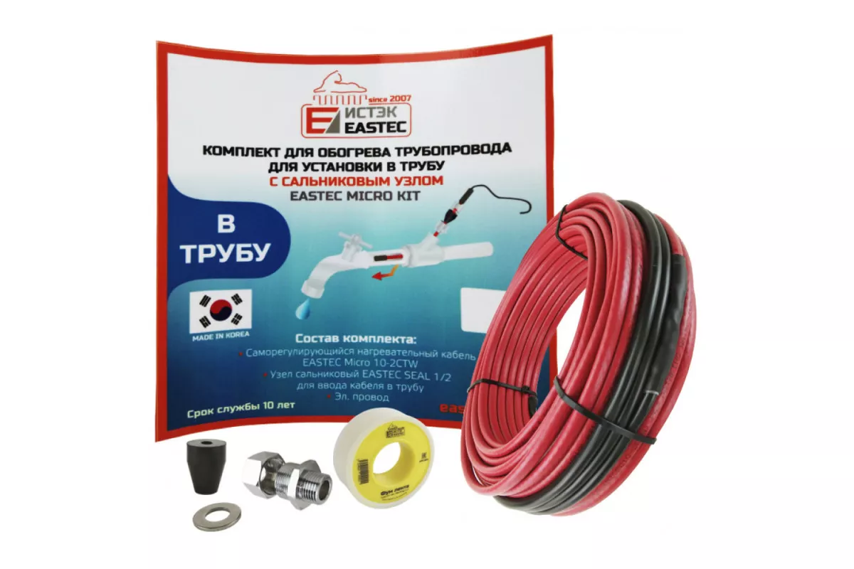 EMK-10 EASTEC комплект обогрева трубопровода для установки в трубу (10м-100 Вт) идеально подходит для использования в системах водоснабжения, включая: