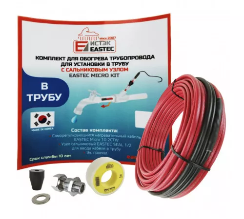 EMK-12 EASTEC комплект обогрева трубопровода для установки в трубу (12м-120 Вт) идеально подходит для использования в системах водоснабжения, включая: