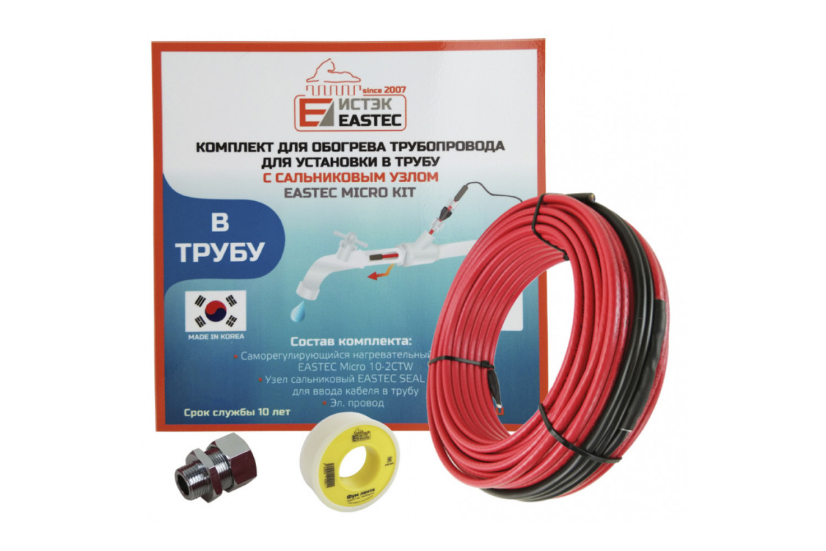 EMK-20 EASTEC комплект обогрева трубопровода для установки в трубу (20м-200 Вт) идеально подходит для использования в системах водоснабжения, включая: