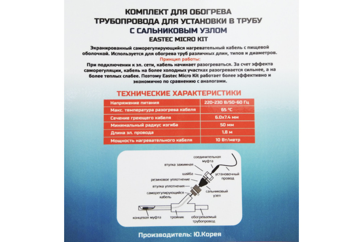 Почему стоит выбрать EMK-25 EASTEC комплект обогрева трубопровода для установки в трубу (25м-250 Вт)?