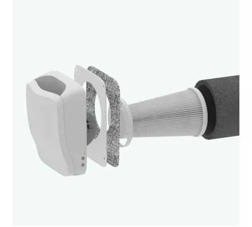 Фильтр тонкой очистки класса F6 установлен в корпусе шумоглушителя. Очищает воздух от частиц размером более 1 микрометра: средняя и мелкая пыль, пух, средняя и мелкая пыльца растений, споры грибов и плесени, бактерии. Необходимо проверять уровень засорённости фильтра и заменять на новый в случае необходимости, но не реже, чем 1 раз в 3-6 месяцев.