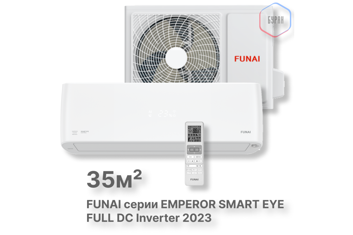 Компания "Буран" в лице монтажников Артёма и Александра установили нашему заказчику Роману топовую модель бренда Funai — FUNAI RAC-I-EU35HP.D01/S EMPEROR UP SMART EYE FU..