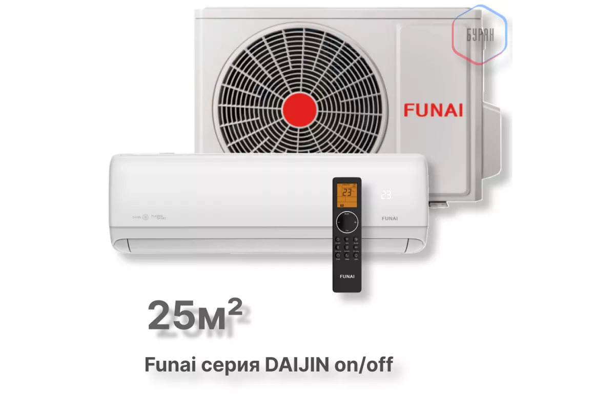 Сплит-система FUNAI RAC-DA25HP.D01 серии DAIJIN предназначена для обслуживания помещений площадью до 25 квадратных метров.