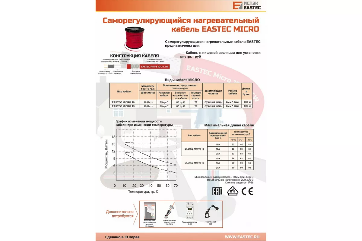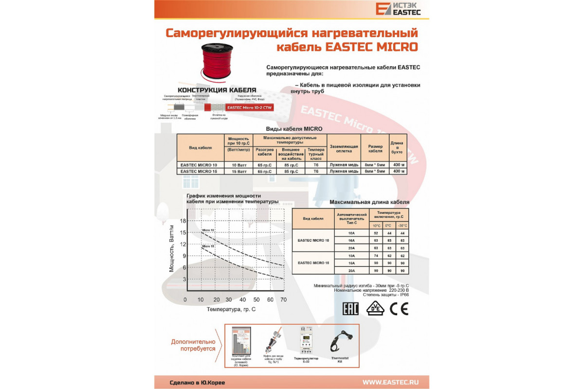 Саморегулирующийся греющий кабель Eastec Micro экранированный пищевой