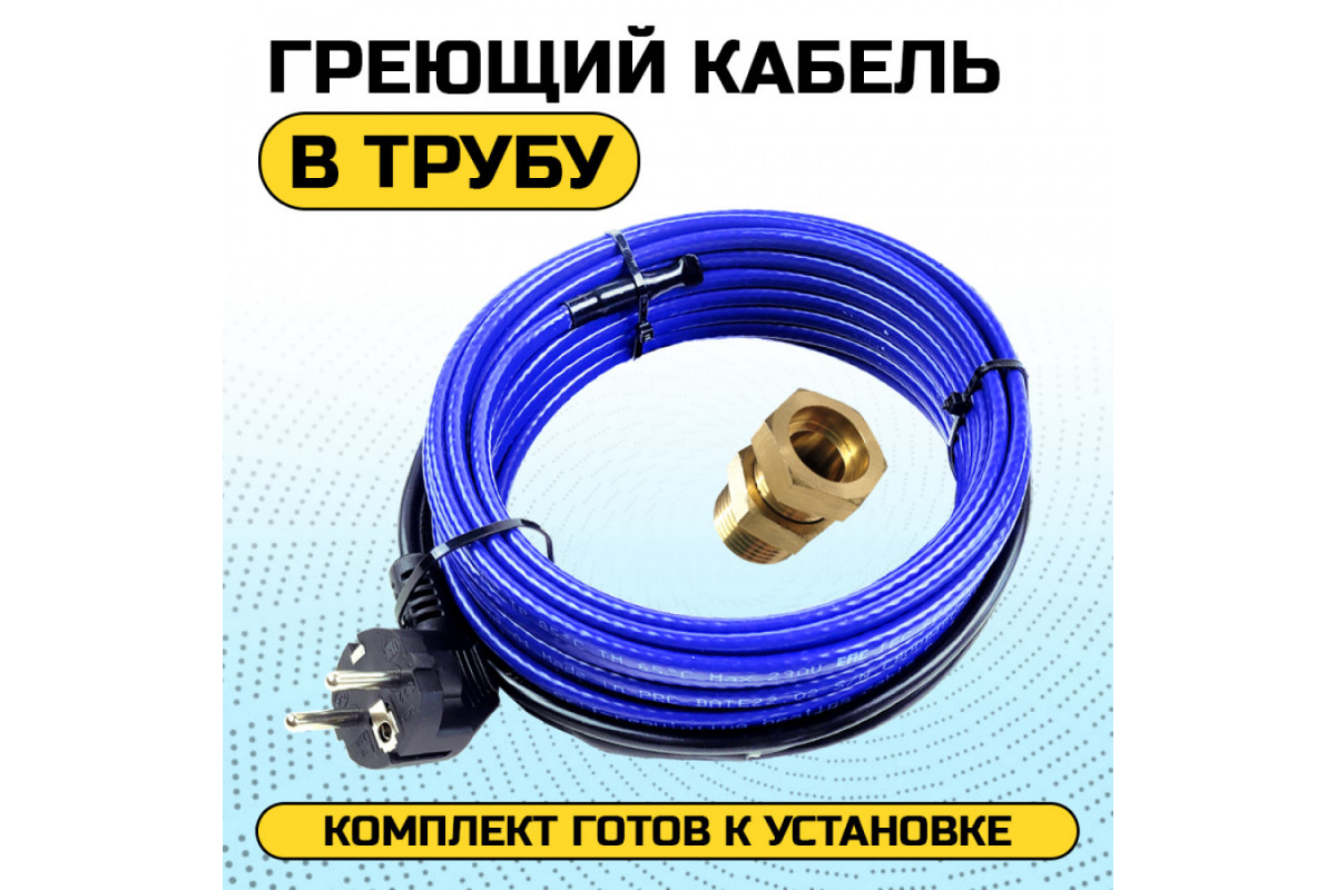 Греющий кабель для установки в трубу с сальниковым узлом - 10м – надёжное решение для защиты труб от замерзания
