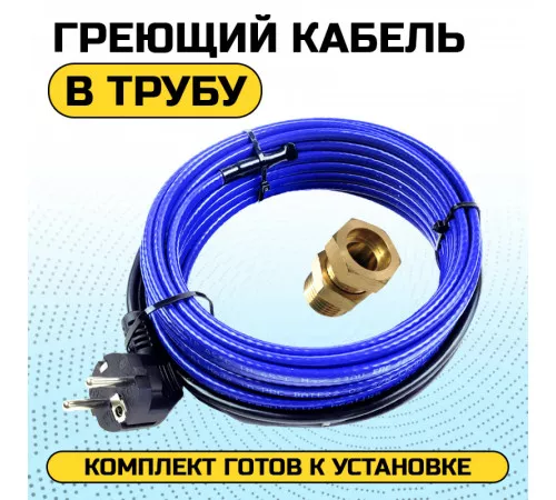 Греющий кабель для установки в трубу с сальниковым узлом - 12м – надёжное решение для защиты труб от замерзания