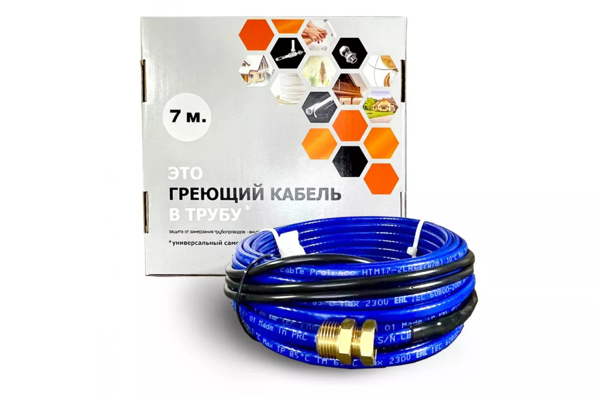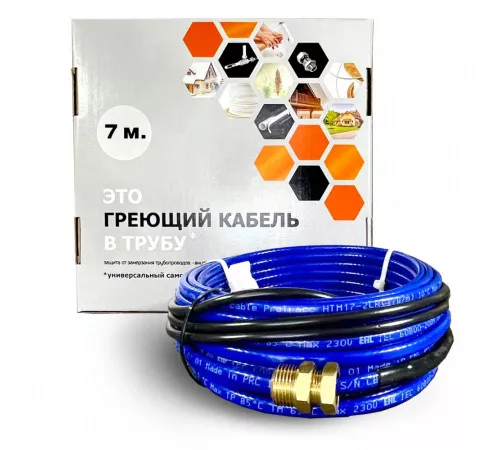 Греющий кабель для установки в трубу с сальниковым узлом - 7м – надёжное решение для защиты труб от замерзания