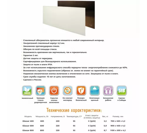 Инфракрасный обогреватель Теплофон ЭРГН-0.8 Glassar (белый) — это сочетание изысканного дизайна и передовых технологий, обеспечивающее комфортный микроклимат в вашем доме или офисе.