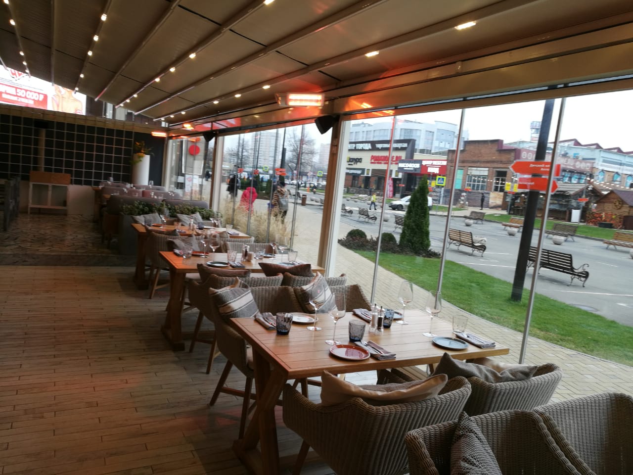 Наступили холода, и, довольно часто, к нам обращаются с вопросом отопления открытых площадей, террас, мероприятий на улице. В этот раз подвернулась отличная возможность не только обьяснить и рассказать о том- как замечательно греют инфракрасные обогреватели интенсивного типа, но и показать. Ресторация «Голый повар» нам любезно в этом помогла. А мы, в свою очередь, решили вопрос с локальным обогревом гостей их полуоткрытой террасы, буквально за один вечер. Полностью, «под ключ». Примечательно в данной системе то- что нет необходимости отапливать всю площадь террасы целиком. Зоны включаются в зависимости от посадки гостей, что позволяет существенно снизить энергопотребление в целом.