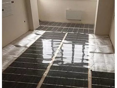 В комнате, совмещенной с лоджий, уложен теплый пленочный пол.