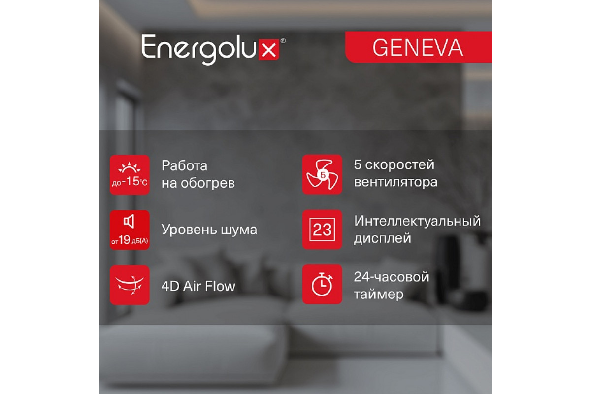 Правильный выбор кондиционера обеспечивает комфорт и экономию энергии. Energolux GENEVA SAS24G4-AI/SAU24G4-AI обладает высоким классом энергоэффективности A++, что снижает затраты на электроэнергию.Благодаря инверторной технологии, устройство поддерживает стабильную температуру без резких перепадов.