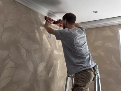 Штатная Бригада №5 успешно смонтировала сплит-систему FUNAI SHOGUN Inverter 25 в гостиной 18 м² — нестандартный монтаж с автовышкой и скрытым сливом Монтаж кондиционера — это не пр..