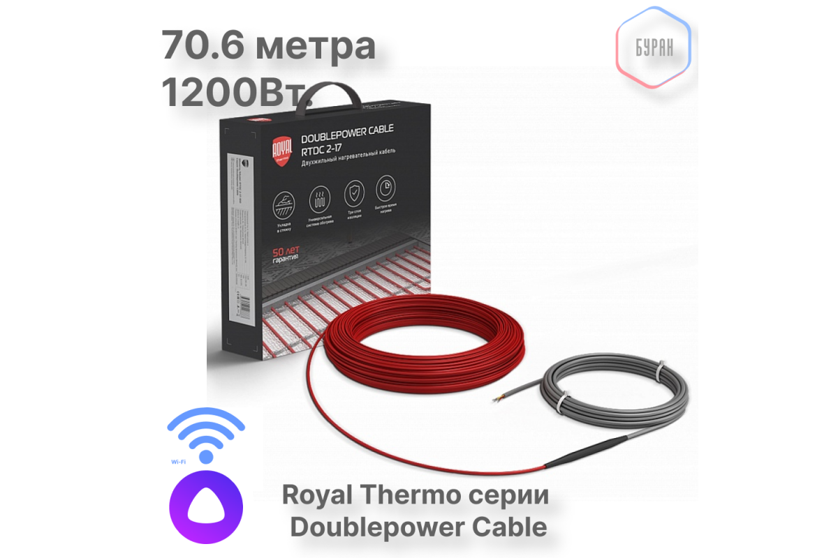 Кабель нагревательный Royal Thermo Doublepower Cable RTDC 2-17-1200 (комплект) – комфортный теплый пол под плитку