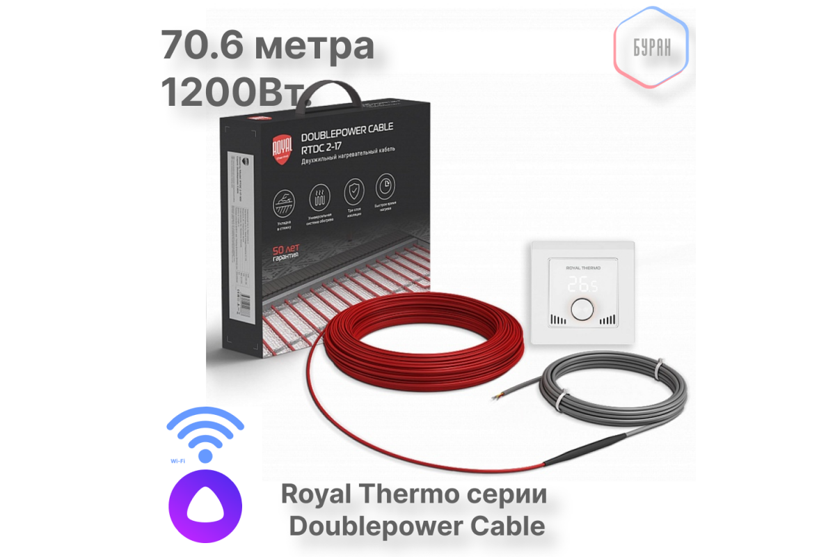 Кабель нагревательный Royal Thermo RTDC 2-17-1200 с терморегулятором RTI-16 – это удобство, экономия и комфорт. С ним вы получите: