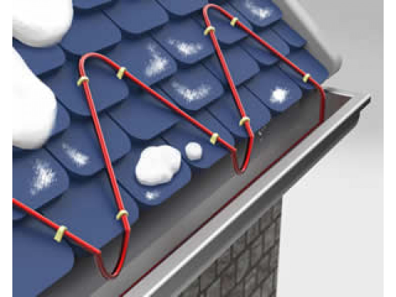 Его укладывают по периметру кровли в виде «змейки» - там, где идет накопление снега и льда: под сливами, по водостокам и желобам, внутри водосточных труб. По ходу движения воды и нужно укладывать греющий кабель.