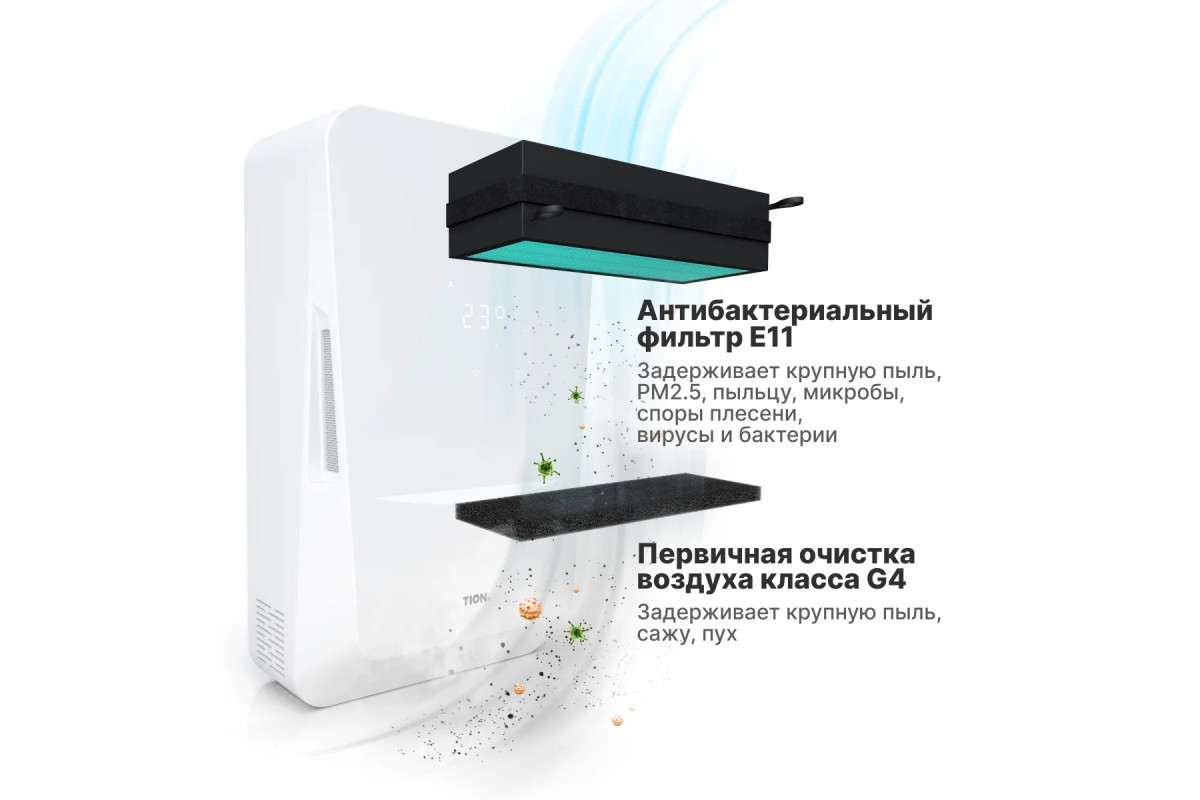 Вирусы и бактерии уничтожаются на антибактериальном фильтре класса EPA.