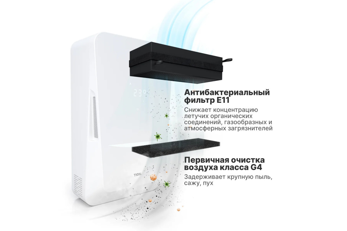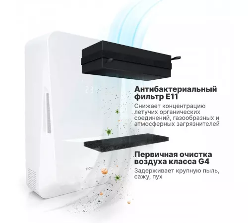 Вирусы и бактерии уничтожаются на антибактериальном фильтре класса EPA.