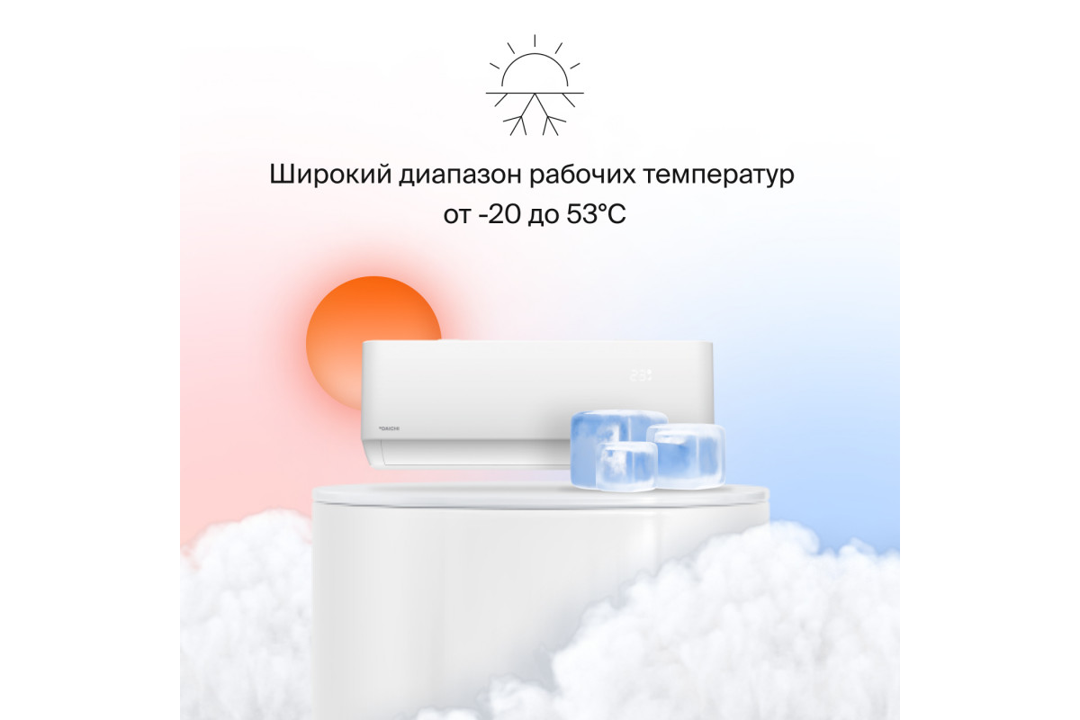 Широкий диапазон рабочих температур: эффективная работа при наружных температурах от -20°C до +53°C, что делает кондиционер универсальным решением для различных климатических условий.