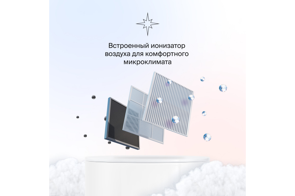 Биполярный ионизатор: циклически генерирует положительные и отрицательные ионы, создавая ионизированную среду, благотворно влияющую на самочувствие.