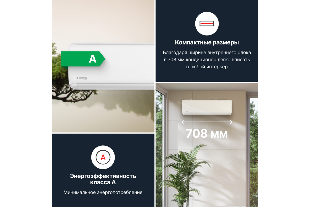 Выбор Kentatsu Tiba On/Off — это гарантия комфорта и надежности.Компактные размеры внутреннего блока (708×185×260 мм) позволяют легко интегрировать его в любой интерьер.Антикоррозийное покрытие теплообменника Blue Fin обеспечивает долговечность устройства. Быстросъёмный фильтр Easy Clean упрощает обслуживание и поддерживает чистоту воздуха. ​