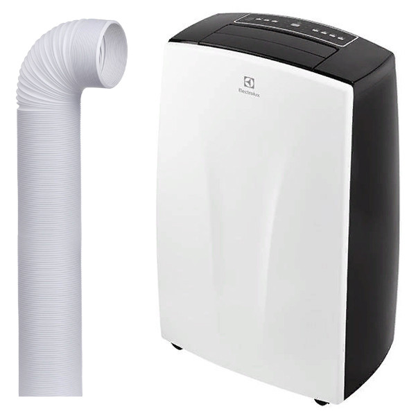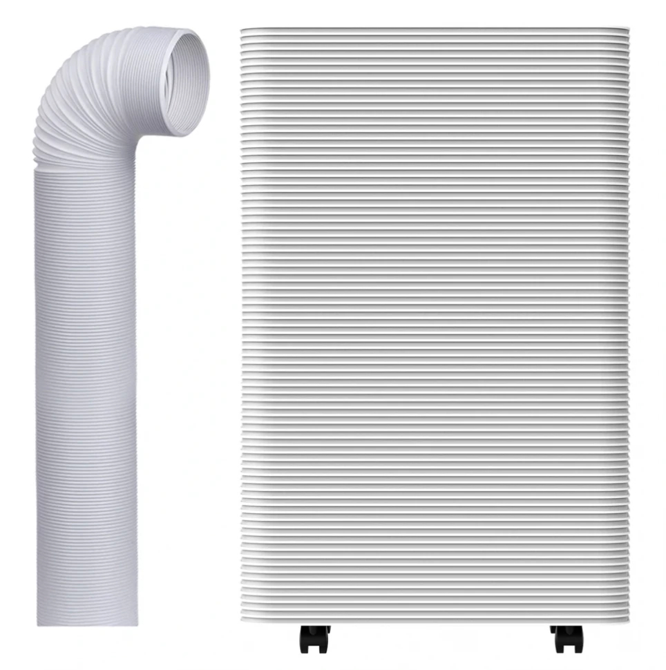 Это напольный кондиционер, который можно легко перемещать между комнатами. Он не требует внутреннего блока и сплит-системы, работает от обычной розетки 220 В и выводит горячий воздух через гофру в форточку или окно. Отличное решение для:
