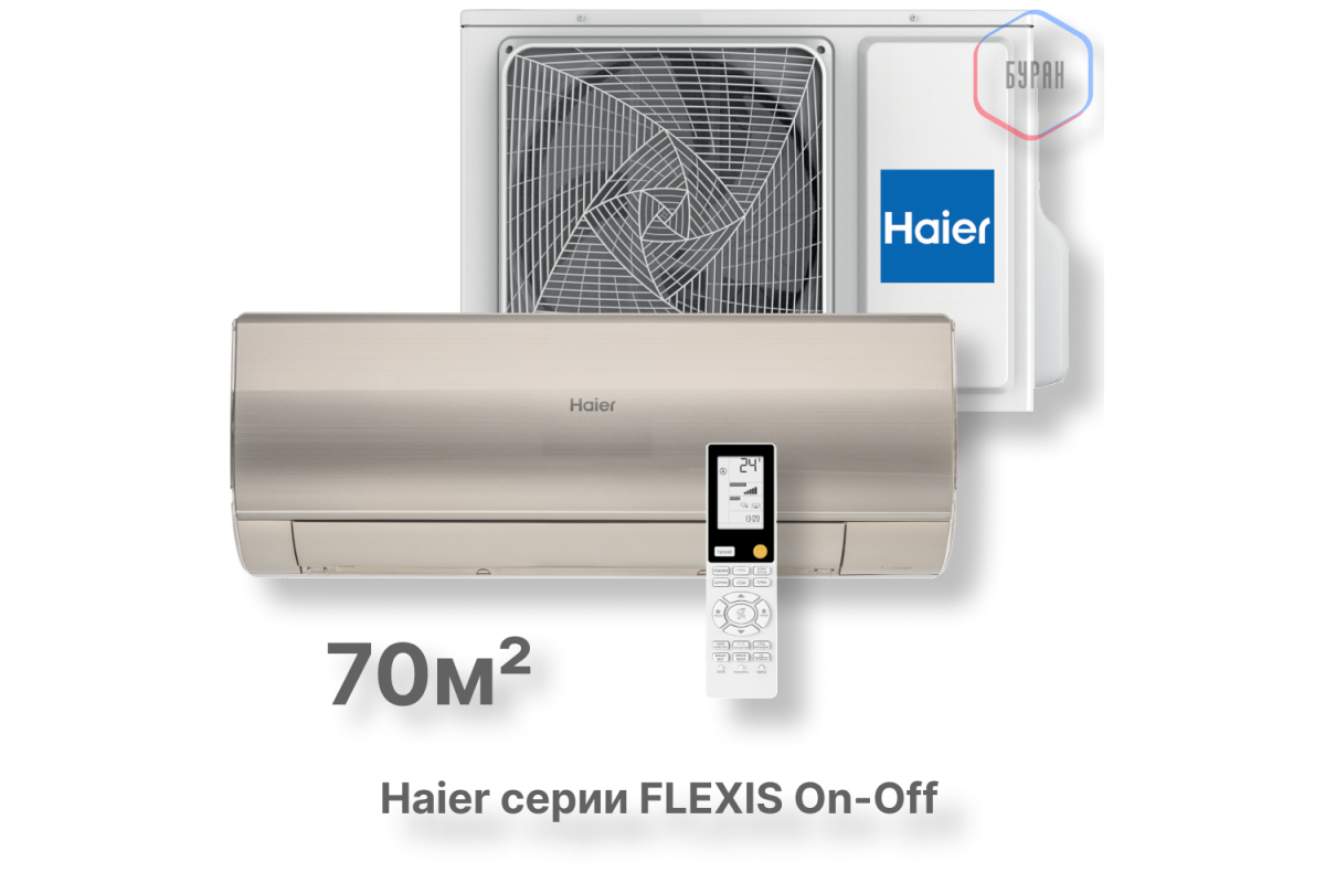 Кондиционер Haier серии Flexis On-Off модели HSU-24HFF103/R3-G/HSU-24HUF103/R3 предназначен для эффективного охлаждения и обогрева помещений площадью до 70 м². ​
