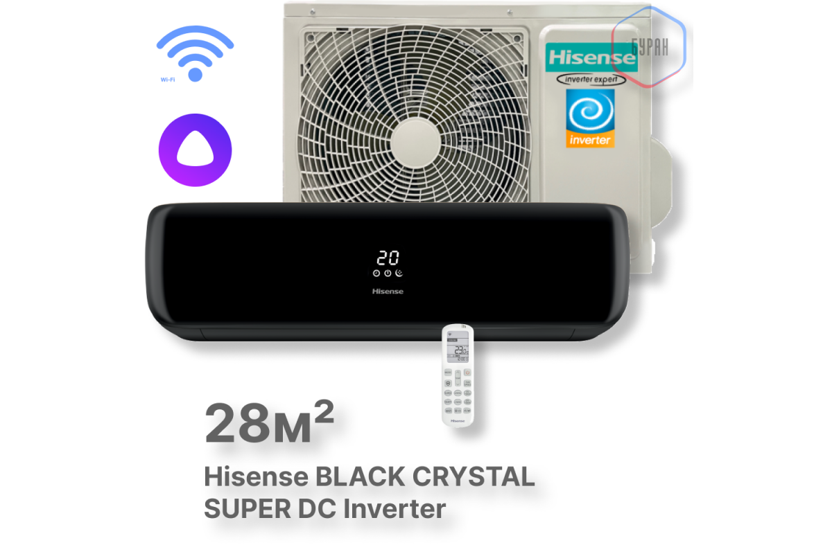 Инверторная сплит-система Hisense AS-10UW4RVETG01(B) Wi-Fi серии Black Crystal Super DC Inverter