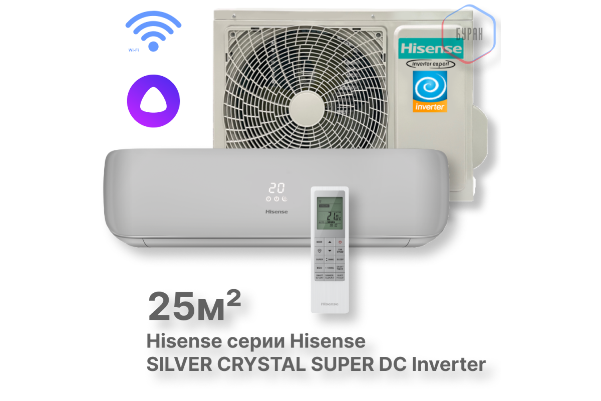 Инверторная сплит-система Hisense AS-10UW4RVETG01(S) Wi-Fi серии Silver Crystal Super DC Inverter