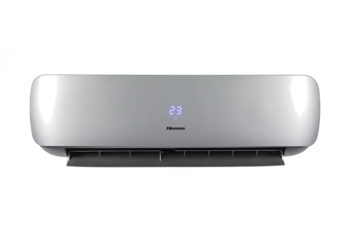 Дизайнерский кондиционер HISENSE SILVER CRYSTAL с Wi-Fi — установка в интерьере с серыми обоями