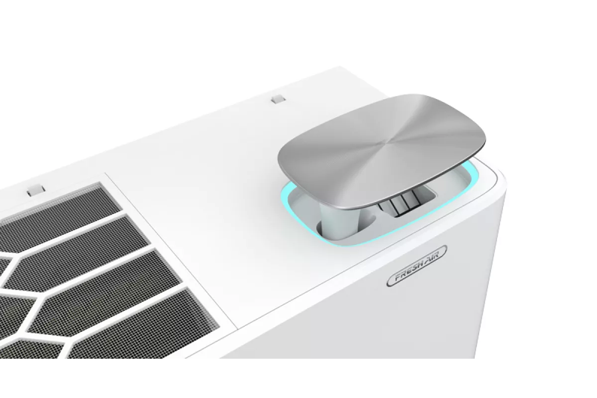 • Встроенная приточная вентиляция — обеспечивает поступление свежего уличного воздуха со скоростью до 60 м3/час. Система способна работать при температуре на улице до -15 °С.