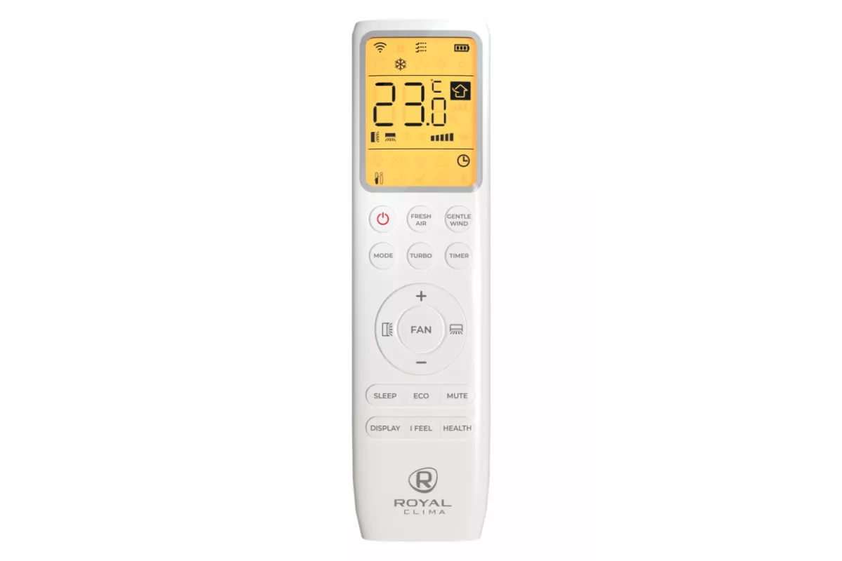• Высокоинформативный модуль индикации — меняя цвет, индикатор отображает режимы работы кондиционера ROYAL FRESH STANDARD: режим охлаждения — синий, режим нагрева — оранжевый, режим осушения — желтый, режим вентилятора — белый, независимый Fresh Air — зеленый