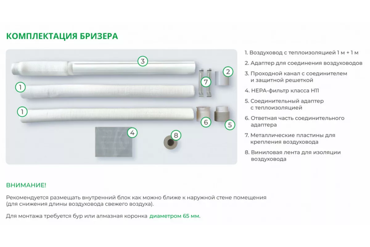 • Система очистки поступающего воздуха  фильтр высокой эффективности HEPA класса H11, который на 95% очищает его от загрязняющих частиц размером от 3 мкм. Свежий, насыщенный кислородом воздух поступает в помещение прямо с улицы.