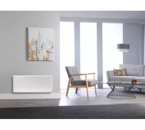 Конвектор оснащён электронным термостатом с LCD-дисплеем, позволяющим точно поддерживать заданную температуру с погрешностью ±0,05 °C. Функция 7-дневного таймера позволяет программировать до 4 независимых сценариев работы в день, обеспечивая комфорт и экономию энергии.