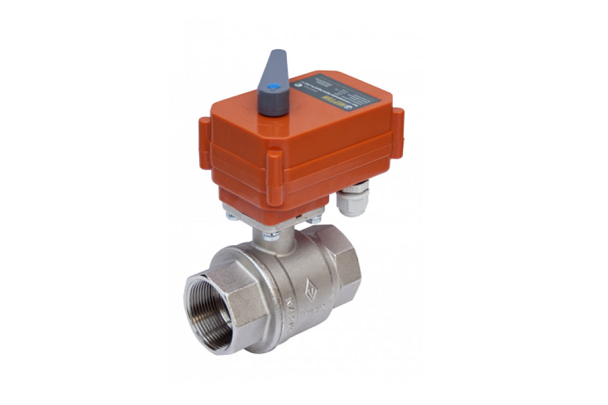 Промышленные шаровые краны с электроприводом серии Neptun Bugatti Pro больших диаметров могут использоваться в системах контроля протечки воды, системах обогрева, фанкойлах, тепловых насосах или установках с автоматически регулируемой подачей холодной и горячей воды или других жидкостей, совместимых с P.T.F.E и N.B.R. Предусмотрено ручное управление краном с помощью рычага на корпусе электропривода. Полнопроходный.