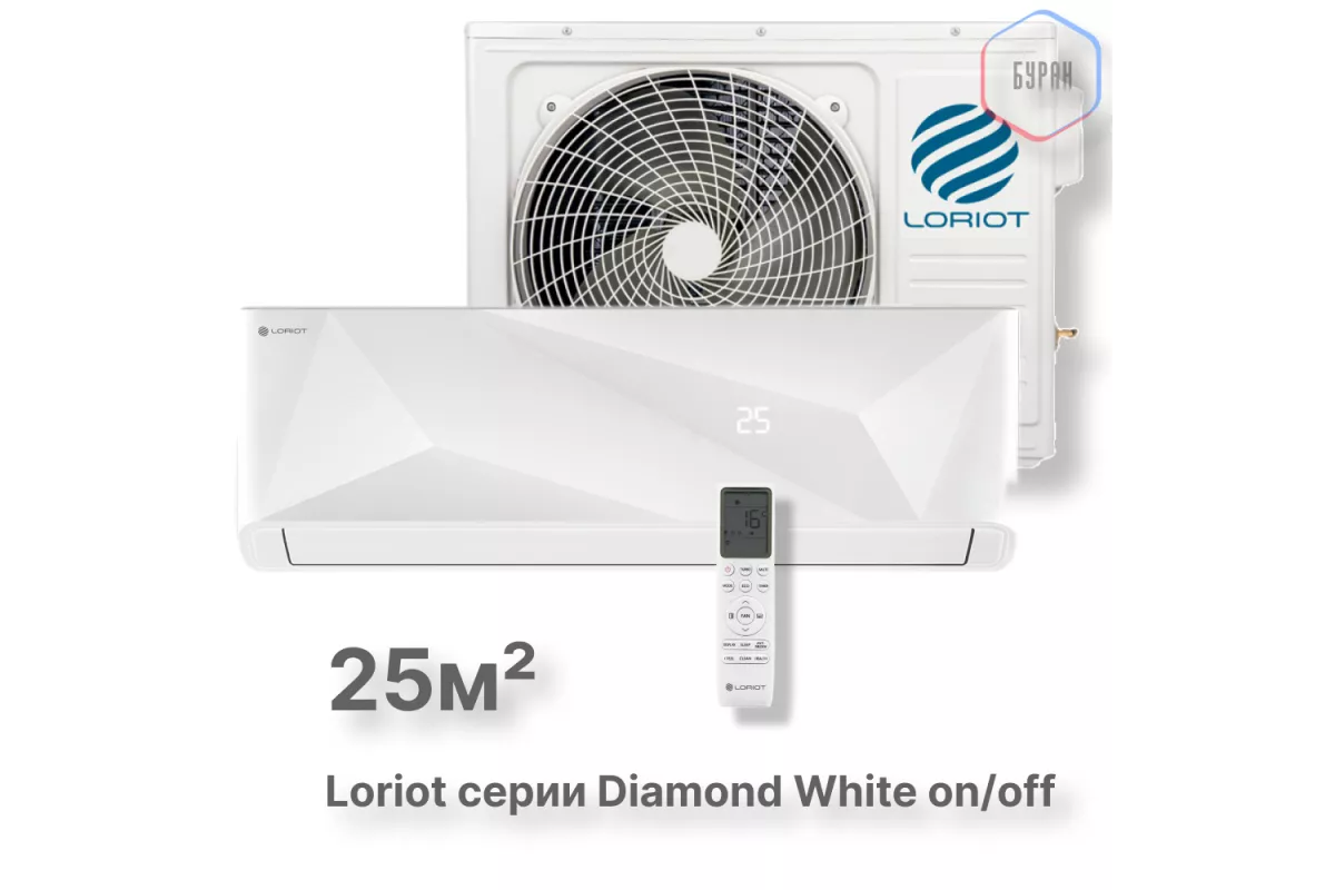 Кондиционер Loriot Diamond White on/off LAC-09MD предназначен для помещений площадью до 25 м², обеспечивая эффективное охлаждение и обогрев небольших комнат и офисов.