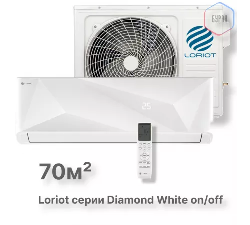 Кондиционер Loriot Diamond White on/off LAC-24MD предназначен для помещений площадью до 70 м², обеспечивая эффективное охлаждение и обогрев небольших комнат и офисов.​