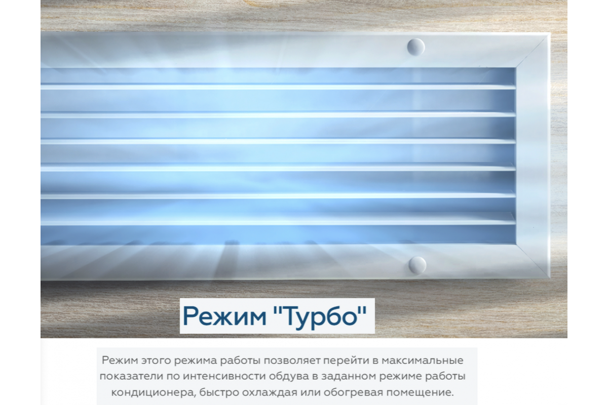 • Режимы работы: охлаждение, обогрев, вентиляция, осушение.