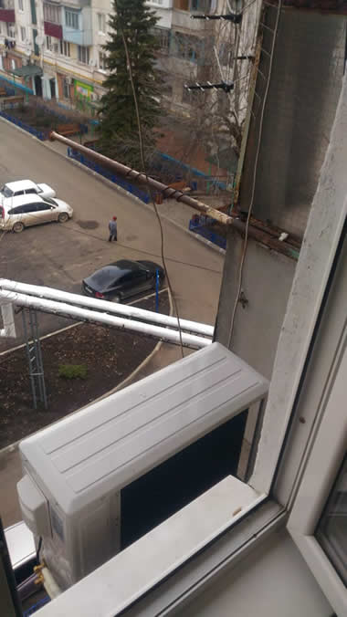 Внутренний блок у окна, а внешний блок под окном – удобно обслуживать и контролировать его работу.