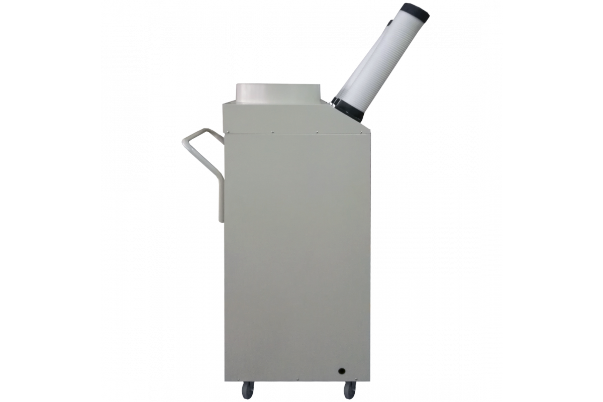 Мобильный промышленный кондиционер RŬSSEL Technics RPAC-85H представляет собой единый корпус, установленный на колеса для передвижения. Основными частями кондиционера являются: испаритель (расположен на передней панели, закрытый фильтром и защитной решеткой), конденсатор (расположен сзади кондиционера и закрыт решеткой), компрессор, вентиляторы конденсатора и испарителя, панель управления (расположена на передней панели кондиционера), ручка для передвижения, воздухораздающий патрубок, защитная решетка вентилятора конденсатора, сетевой шнур. Оборудование полностью заправлено хладагентом и готово к работе. Детальное описание кондиционера, инструкция по эксплуатации, обслуживанию и ремонту представлены в разделе Тех. Информация.