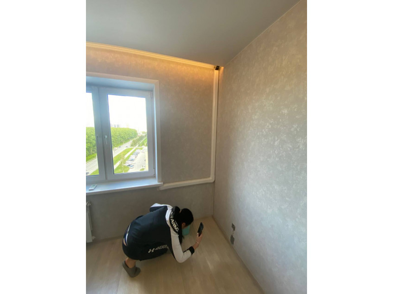 - Подготовка помещения: Перед началом работ необходимо было подготовить помещение. Были защищены мебель и полы, чтобы избежать повреждений и загрязнений.