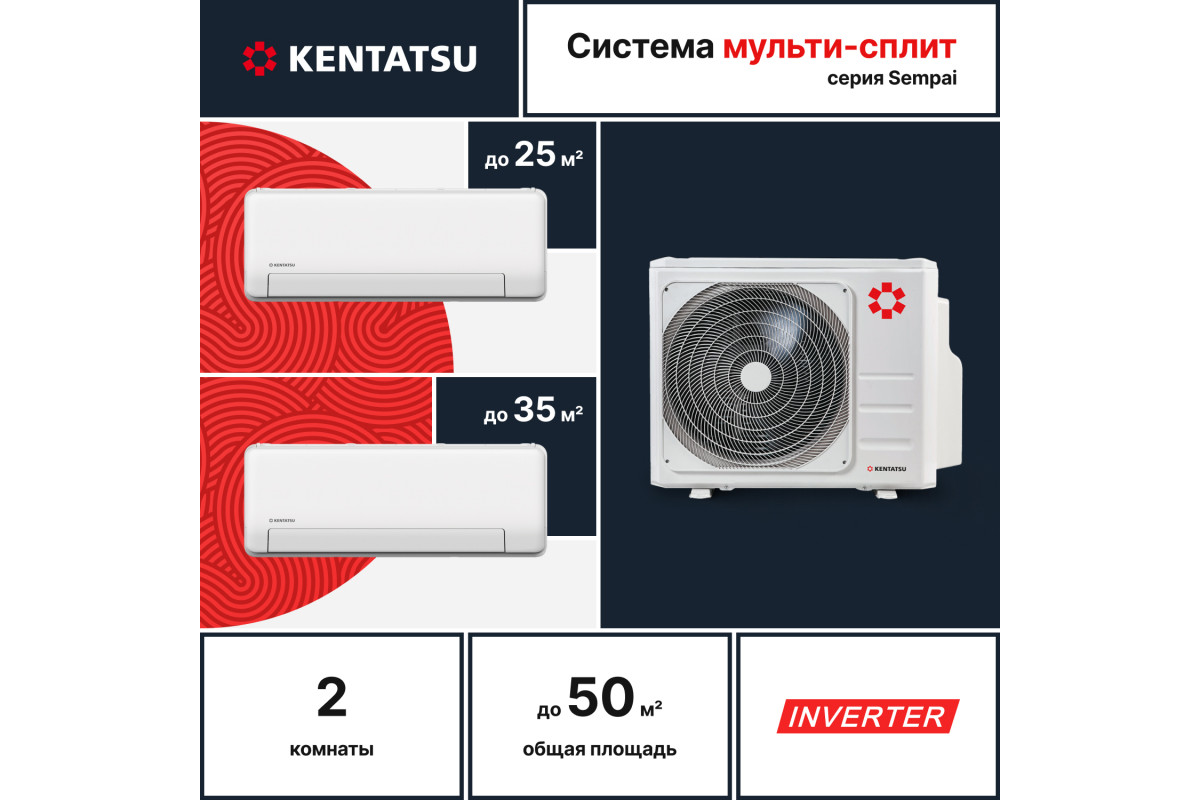 Мультисплит-система Kentatsu K2MRB50HZRN1/KSGPA26HZRN1/KSGPA35HZRN1 Sempai Inverter: Идеальный климат в вашем доме! ❄️️